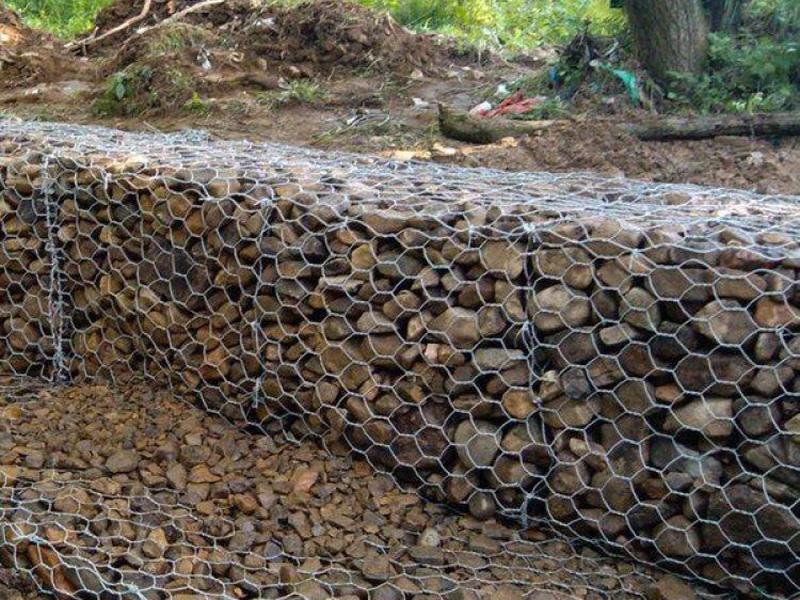 石籠網由高抗腐蝕、高強度、具有延展性的低碳鋼絲或者包覆PVC的以上鋼絲使用機械編織而成,使用該網制作而成的箱型結構就是石籠網箱。根據ASTM和EN標準,所使用的低碳鋼絲直徑根據工程設計要求而不同。一般介于2.0-4.0mm之間,石籠網鋼絲的抗拉強度不少于38kg/m2,金屬鍍層重量一般高于245g/m2,石籠網片的邊緣線直徑一般要大于網線直徑。其雙線絞合部分的長度不得小于50mm.以保證絞合部分鋼絲的金屬鍍層和PVC鍍層不受破壞。